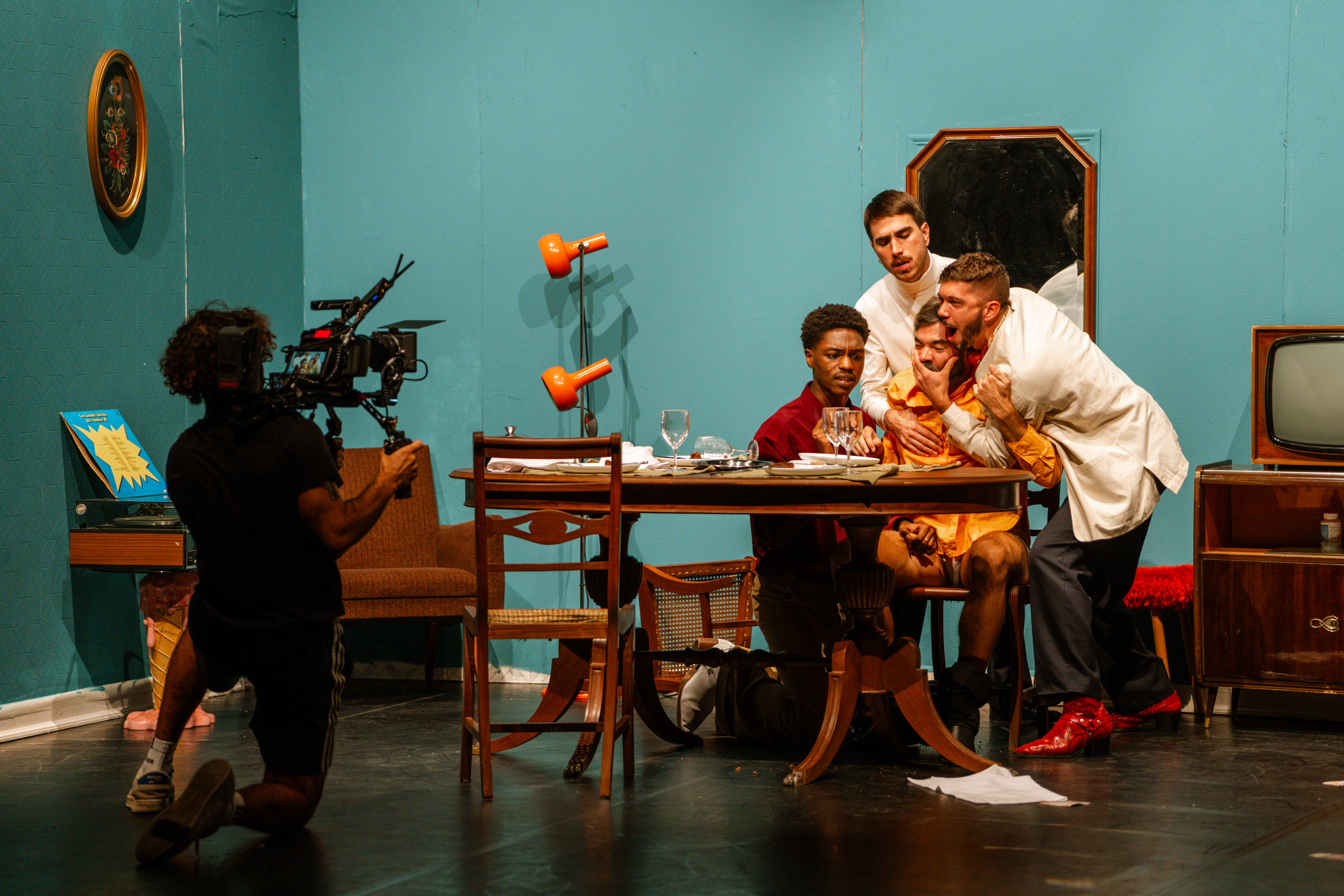 É neste contexto paradoxo, que o coletivo prossegue a sua pesquisa sobre a fusão entre teatro e cinema, uma linha de trabalho que desenvolvem desde 2020 com o projeto “Fora de Campo”. “Há um confronto entre a linguagem teatral e a cinematográfica”, dizem. O público assiste simultaneamente ao palco e à projeção, num jogo de duplos planos que questiona a própria ideia de liberdade de olhar.