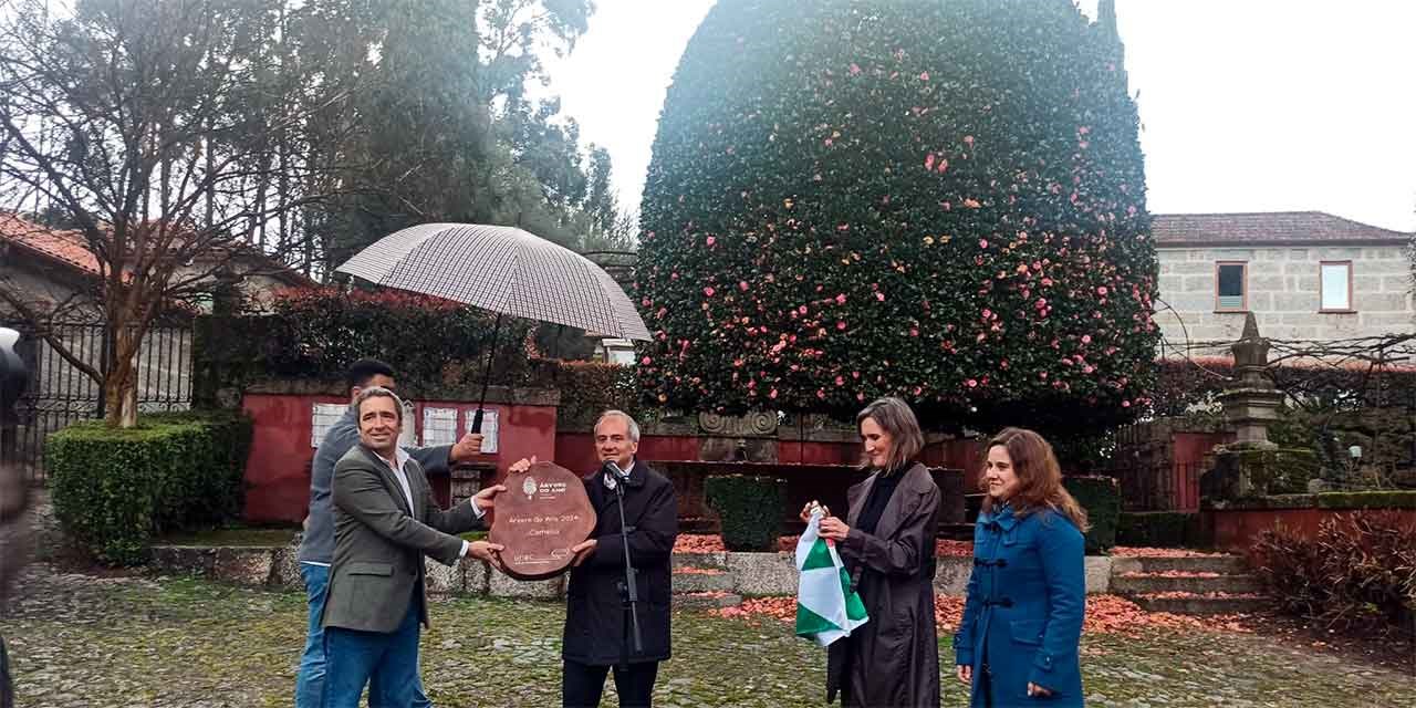 A Camélia de Guimarães recebeu esta quinta-feira o Prémio Árvore do Ano 2024 em Portugal, coroando assim a escolha dos portugueses deste exemplar da espécie camélia-japoneira que se destaca nos jardins da Villa Margaridi.