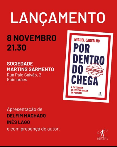 No dia 8 de novembro, Guimarães recebe o lançamento do livro "Por dentro do Chega - A face oculta da extrema-direita em Portugal", da autoria do jornalista Miguel Carvalho. O evento contará com duas apresentações, a primeira às 18h00, na Livraria Rimas e Tabuadas, com apresentação a cargo de José Luís Ribeiro e com a presença do autor, e a segunda às 21h30, na Sociedade Martins Sarmento, com apresentação realizada por Delfim Machado e Inês Lago e com presença do autor.