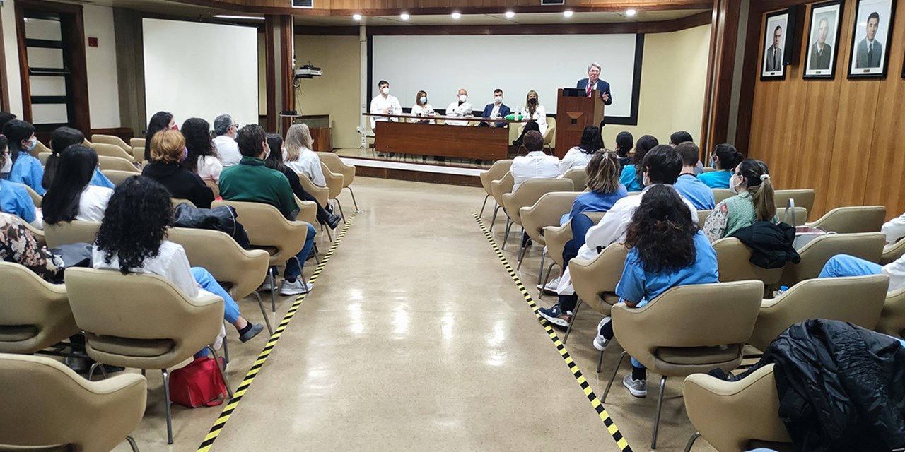 A sessão de acolhimento decorreu esta terça-feira no Auditório do Hospital, contando com a presença de Henrique Capelas, Presidente do Conselho de Administração. O Internato Médico é composto pela Formação Geral (primeiro ano do Internato caracterizado por um período de formação geral onde o médico tem oportunidade de contactar com vários serviços) e consecutivamente pela Formação Específica (um período de especialização que poderá durar entre quatro e seis anos). No Hospital de Guimarães os Internos de Formação Geral irão desenvolver, ao longo de 2022, a sua formação através de uma medicina tutelada, nas seguintes especialidades: Medicina Interna, Cirurgia, Pediatria e Medicina Geral e Familiar.