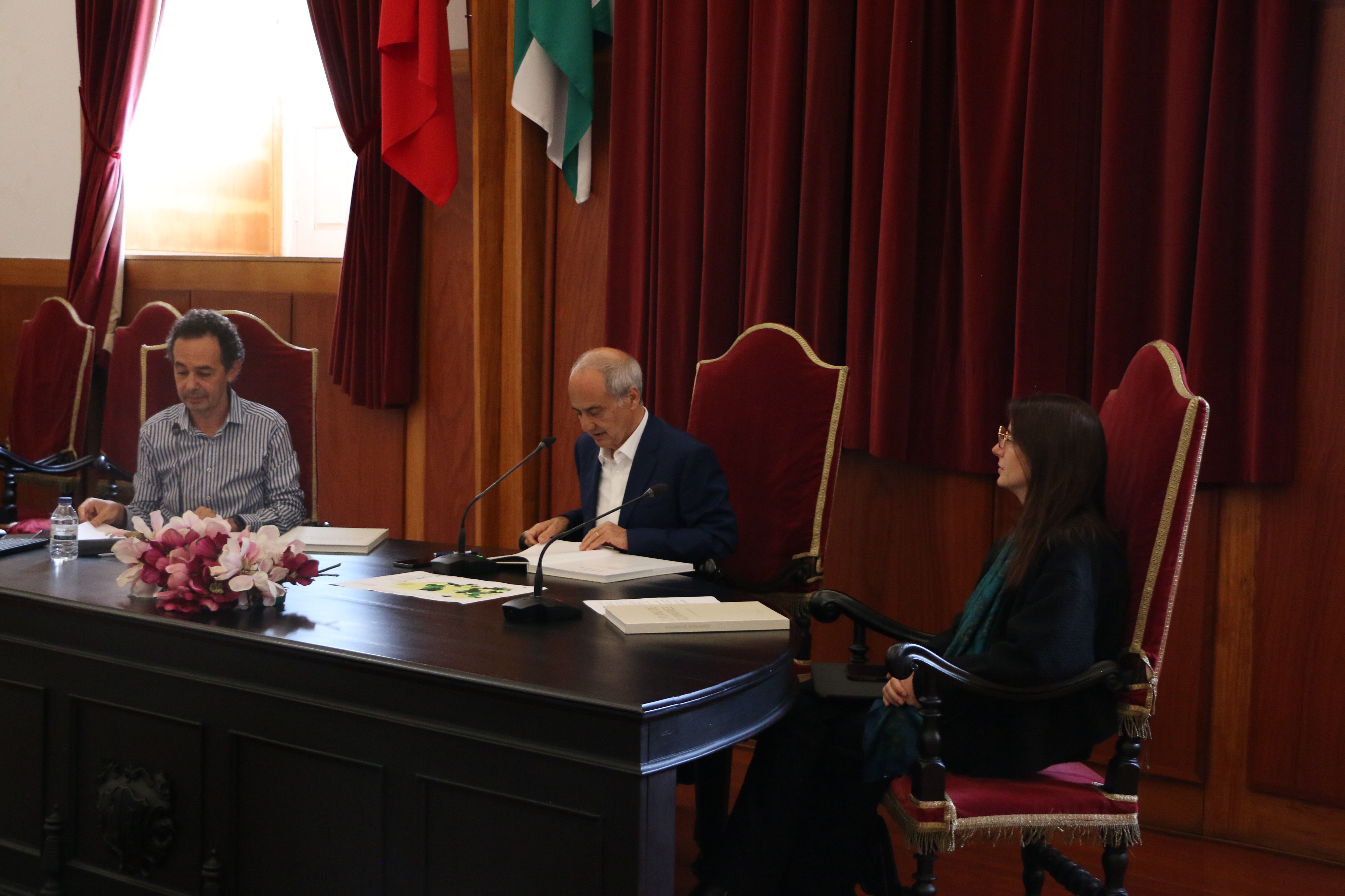 A sessão de apresentação do livro "O Plano de Guimarães - Plano Diretor Municipal 2025" decorreu esta sexta-feira, pelas 11h30, no Salão Nobre da Câmara Municipal de Guimarães, contando com a presença da vereadora do Urbanismo, Ana Cotter, do diretor do Departamento de Desenvolvimento do Território, Pedro Sousa, e do presidente da Câmara, Domingos Bragança, em término de mandato.