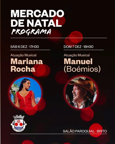 O Mercado de Natal, promovido pela Junta de Freguesia de Brito, vai desenrolar-se nos dias 6 e 7 de dezembro. No sábado, espera-se a chegada do Pai Natal ao som de Mariana Rocha, pelas 17h30. Já no domingo, sobe ao palco Manuel (Boémios), às 16h30.
